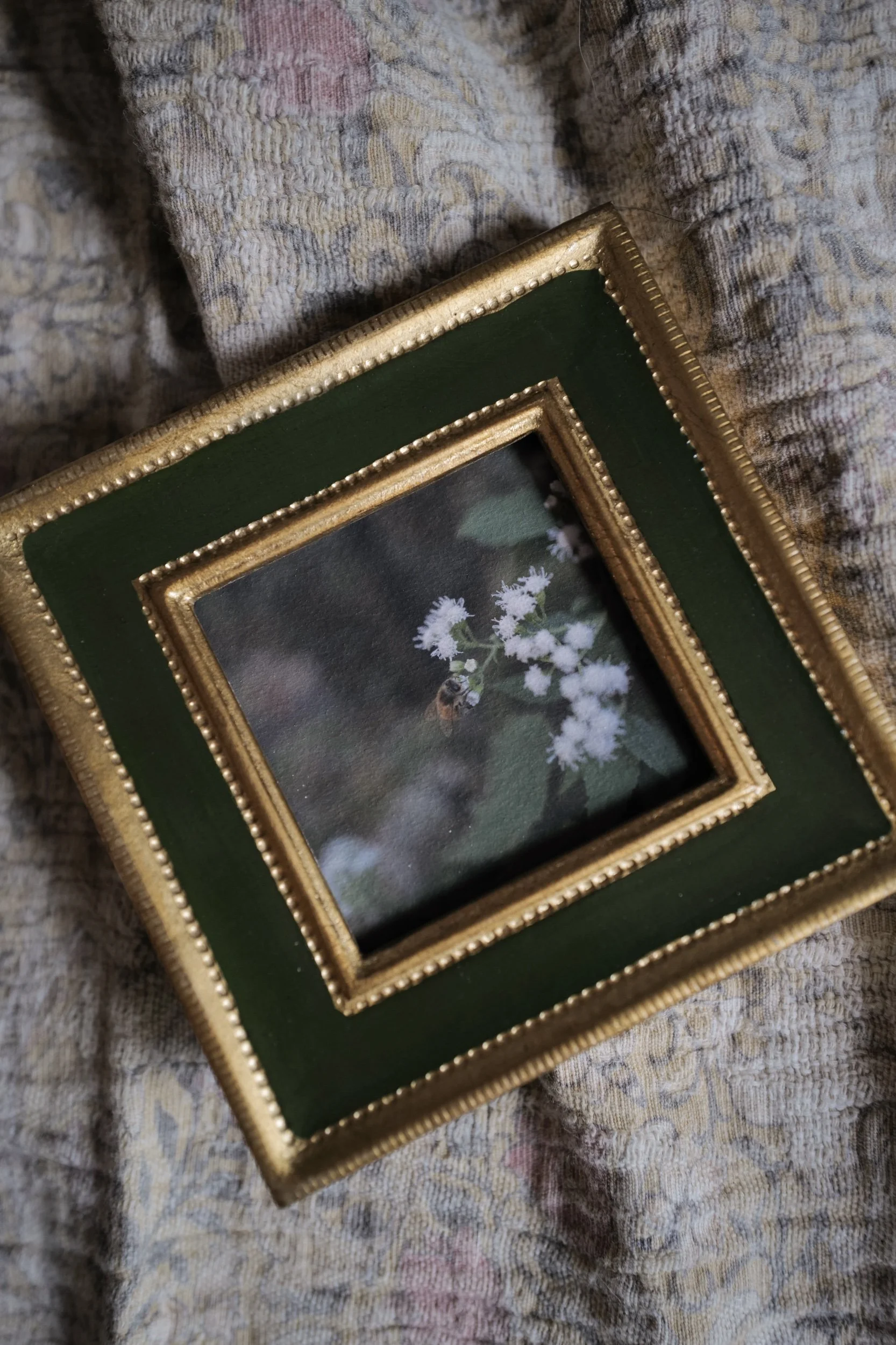 This is a one-of-a-kind original photo taken by Kesia. Hand cut. Framed in a handmade easel-back Florentine frame under glass. Photograph is printed on heavy matte 100% cotton Fine-Art German rag paper. The rich texture of the paper, and the handmade imperfections of the frame, give a gorgeous vintage feel to the piece.
