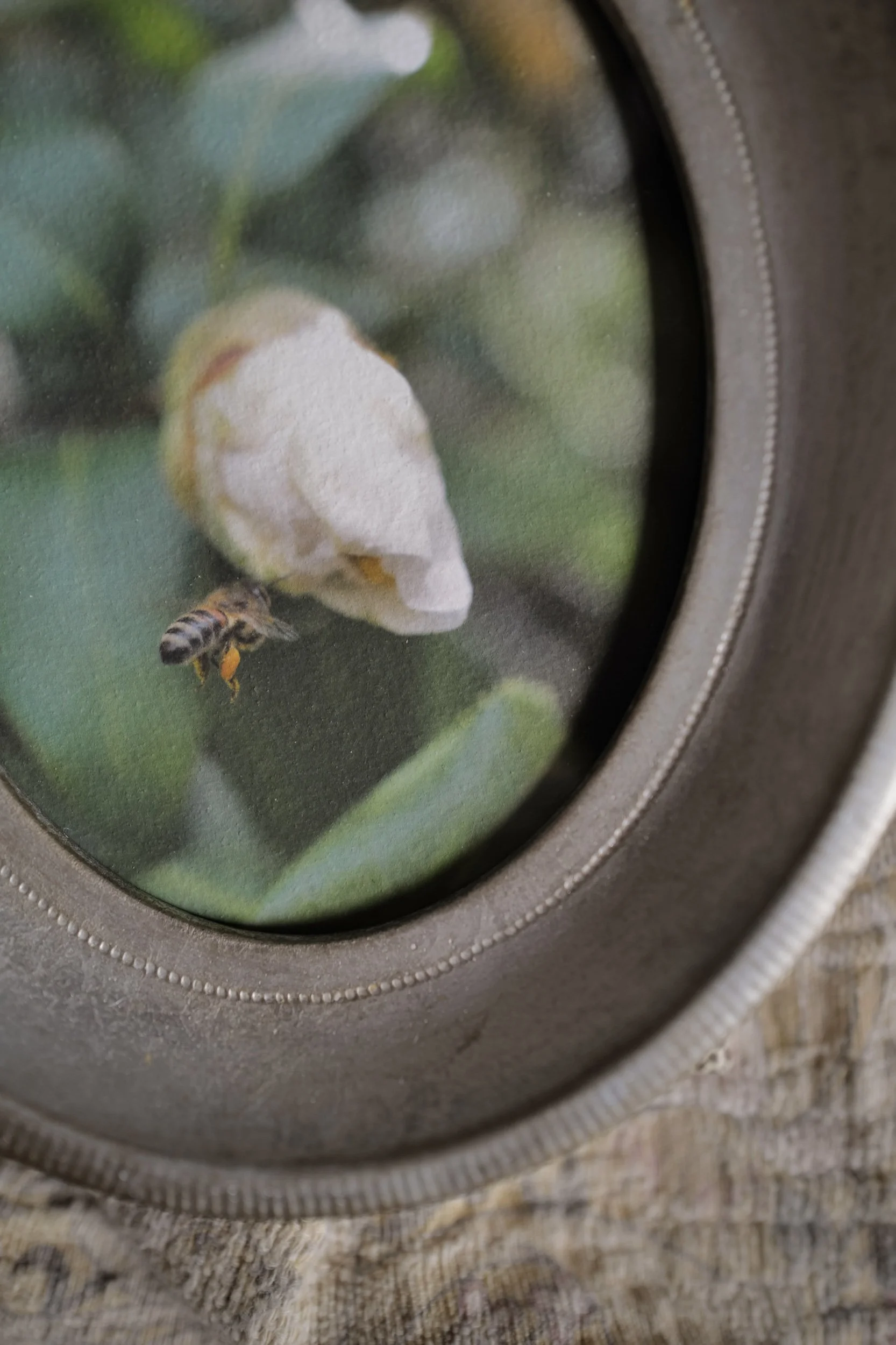 Since she first bought her camera, Kesia has taken thousands of photos of bees. They have brought joy digitally as she has shared them online, and now select pieces have been printed and framed to last a lifetime in your homes. Each photograph and frame are a totally unique, one-of-a-kind composition.