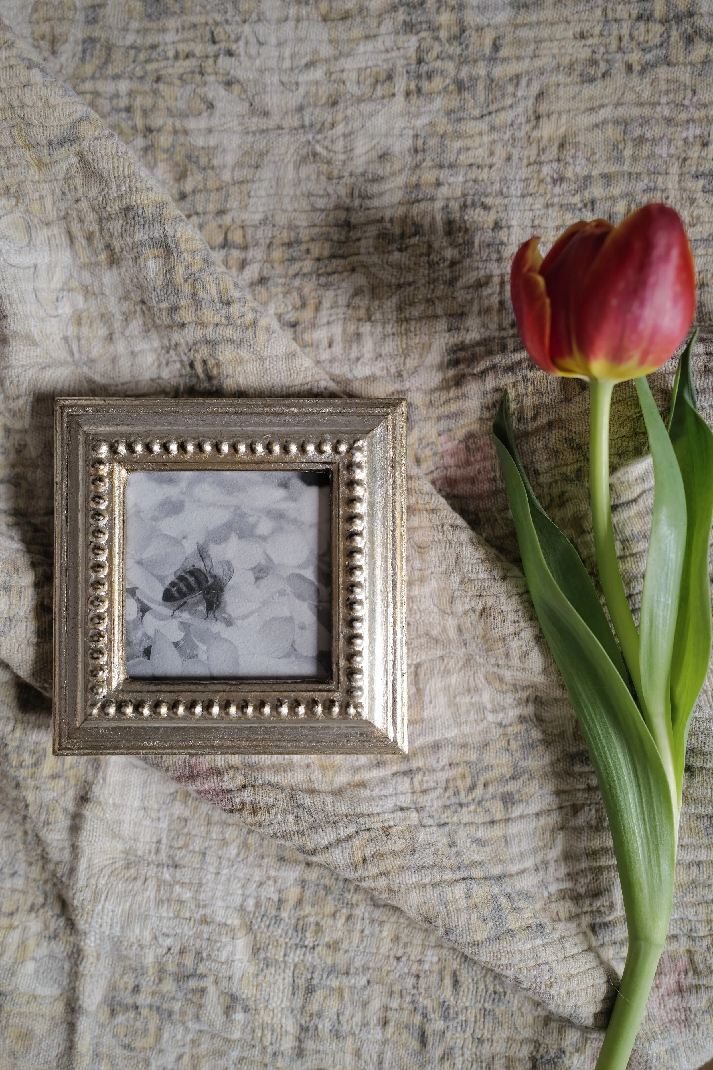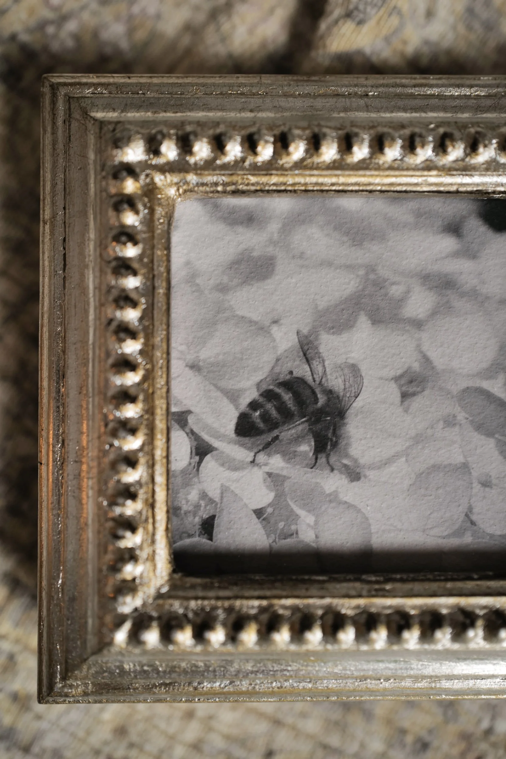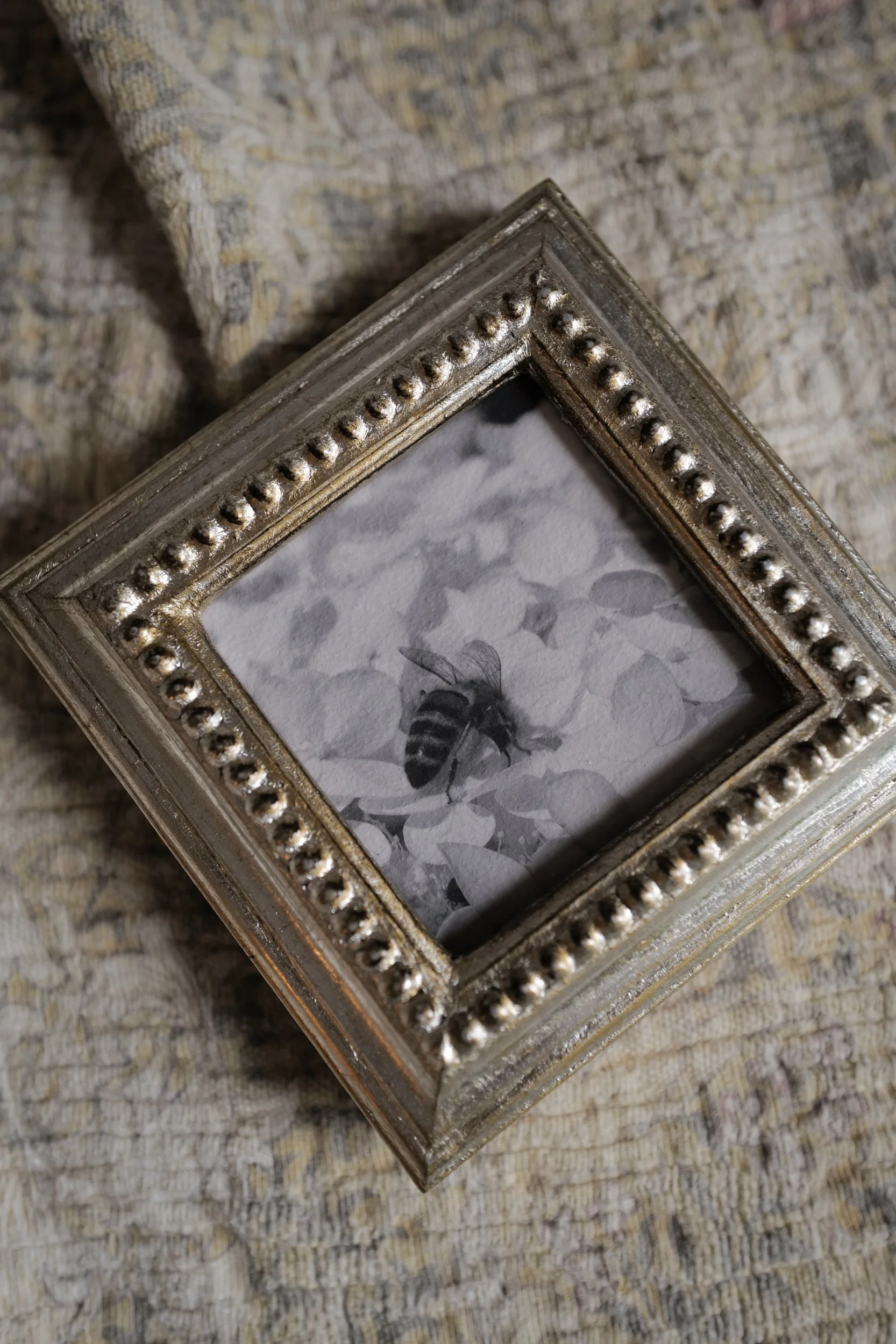 Since she first bought her camera, Kesia has taken thousands of photos of bees. They have brought joy digitally as she has shared them online, and now select pieces have been printed and framed to last a lifetime in your homes. Each photograph and frame are a totally unique, one-of-a-kind composition.