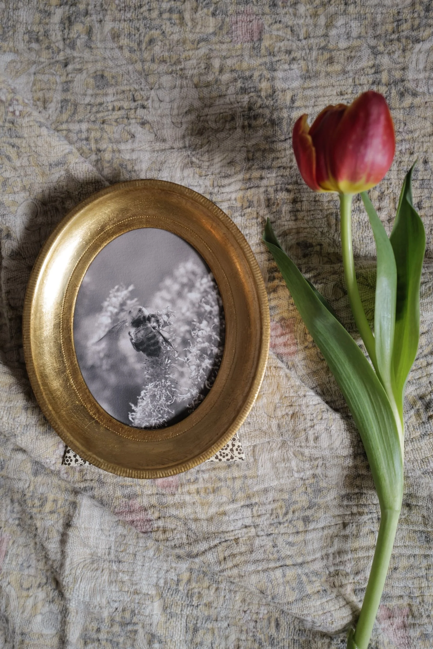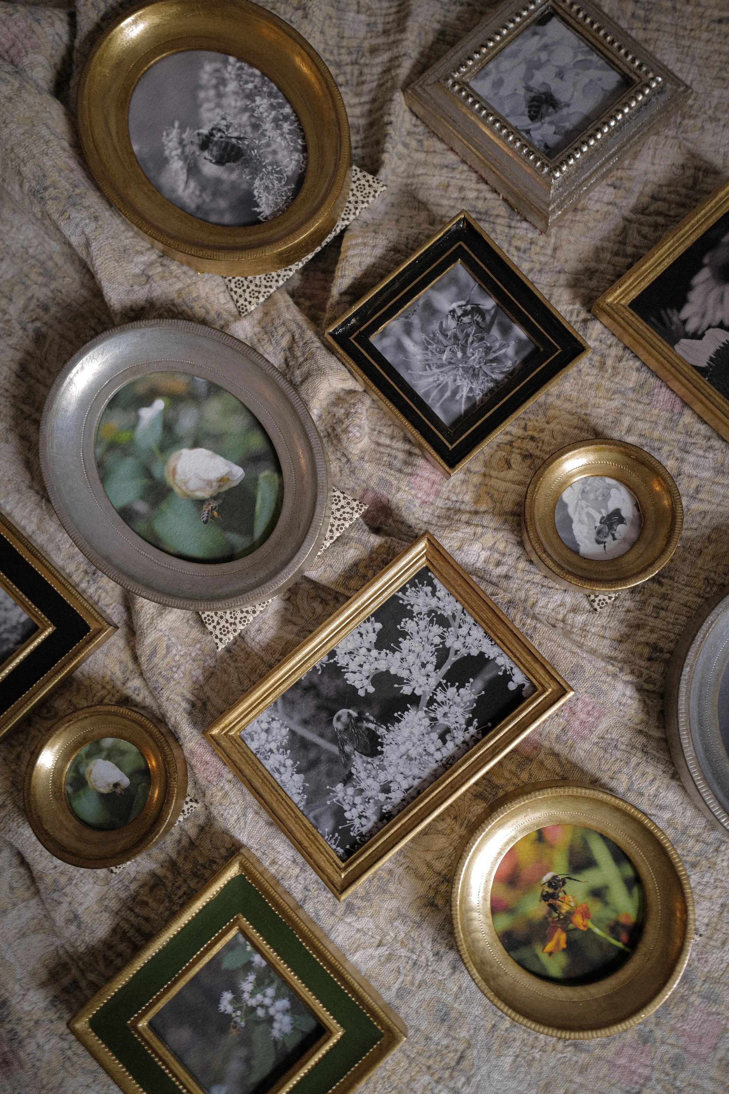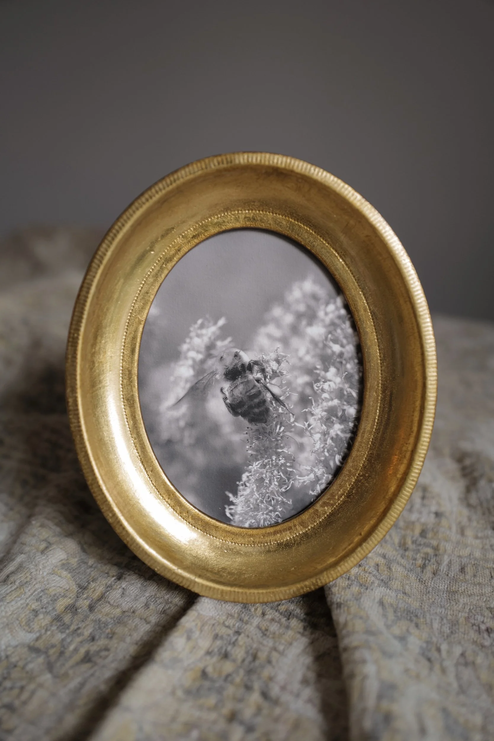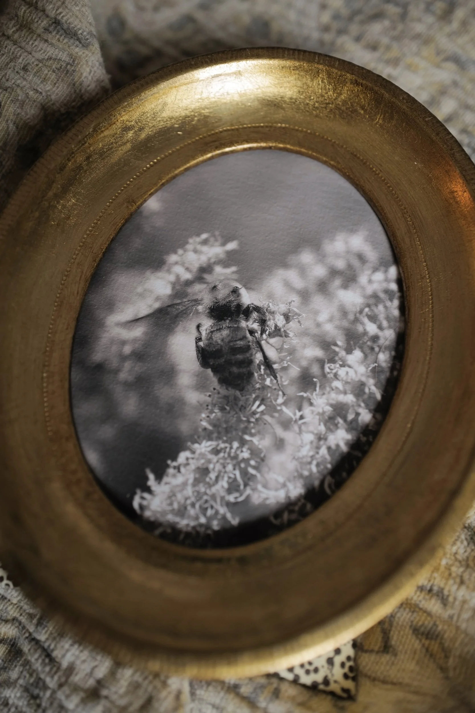 Since she first bought her camera, Kesia has taken thousands of photos of bees. They have brought joy digitally as she has shared them online, and now select pieces have been printed and framed to last a lifetime in your homes. Each photograph and frame are a totally unique, one-of-a-kind composition.