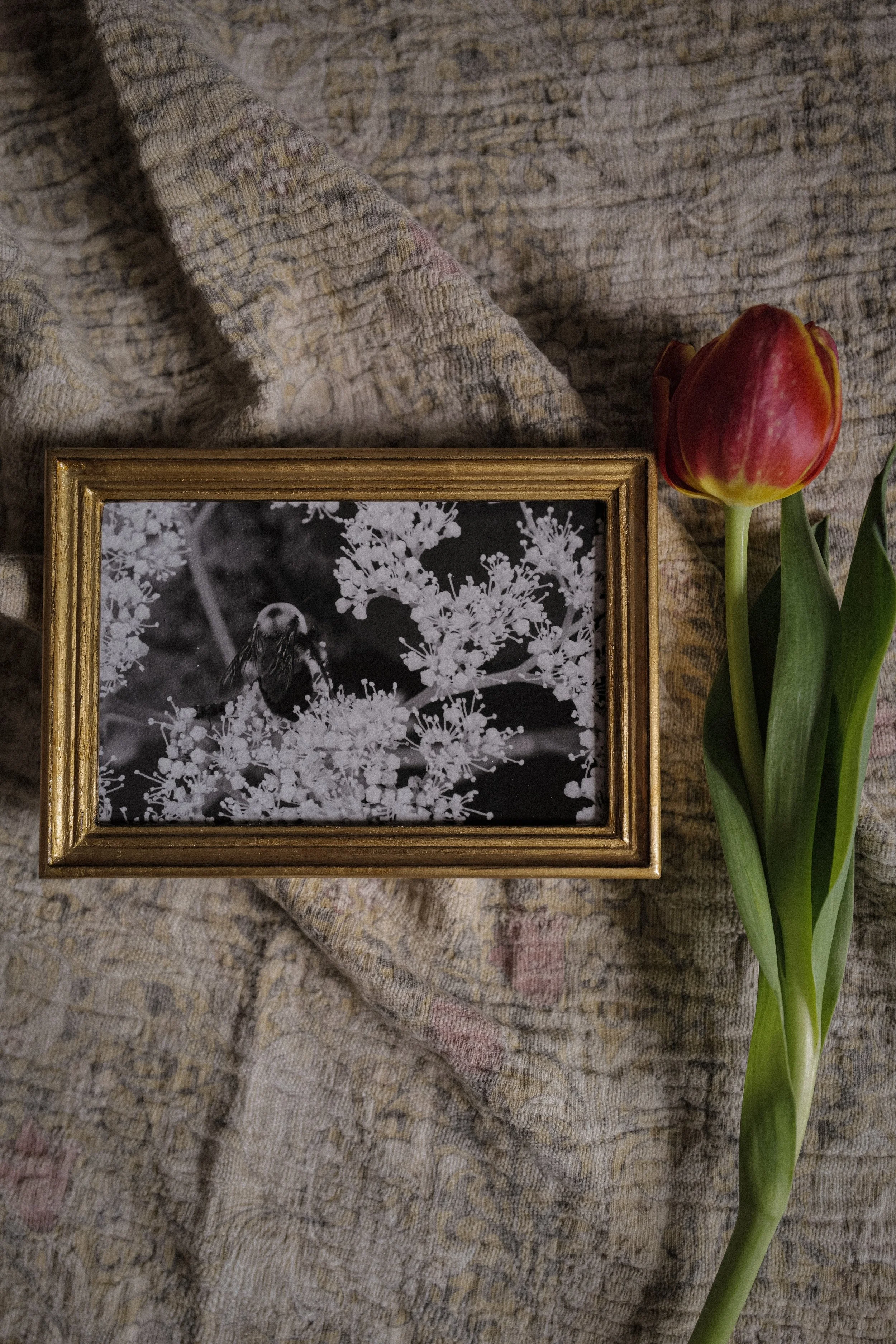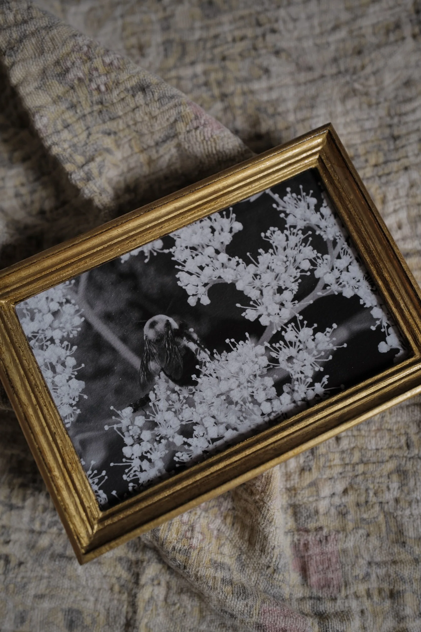 This is a one-of-a-kind original photo taken by Kesia. Hand cut. Framed in a handmade easel-back Florentine frame under glass. Photograph is printed on heavy matte 100% cotton Fine-Art German rag paper. The rich texture of the paper, and the handmade imperfections of the frame, give a gorgeous vintage feel to the piece.
