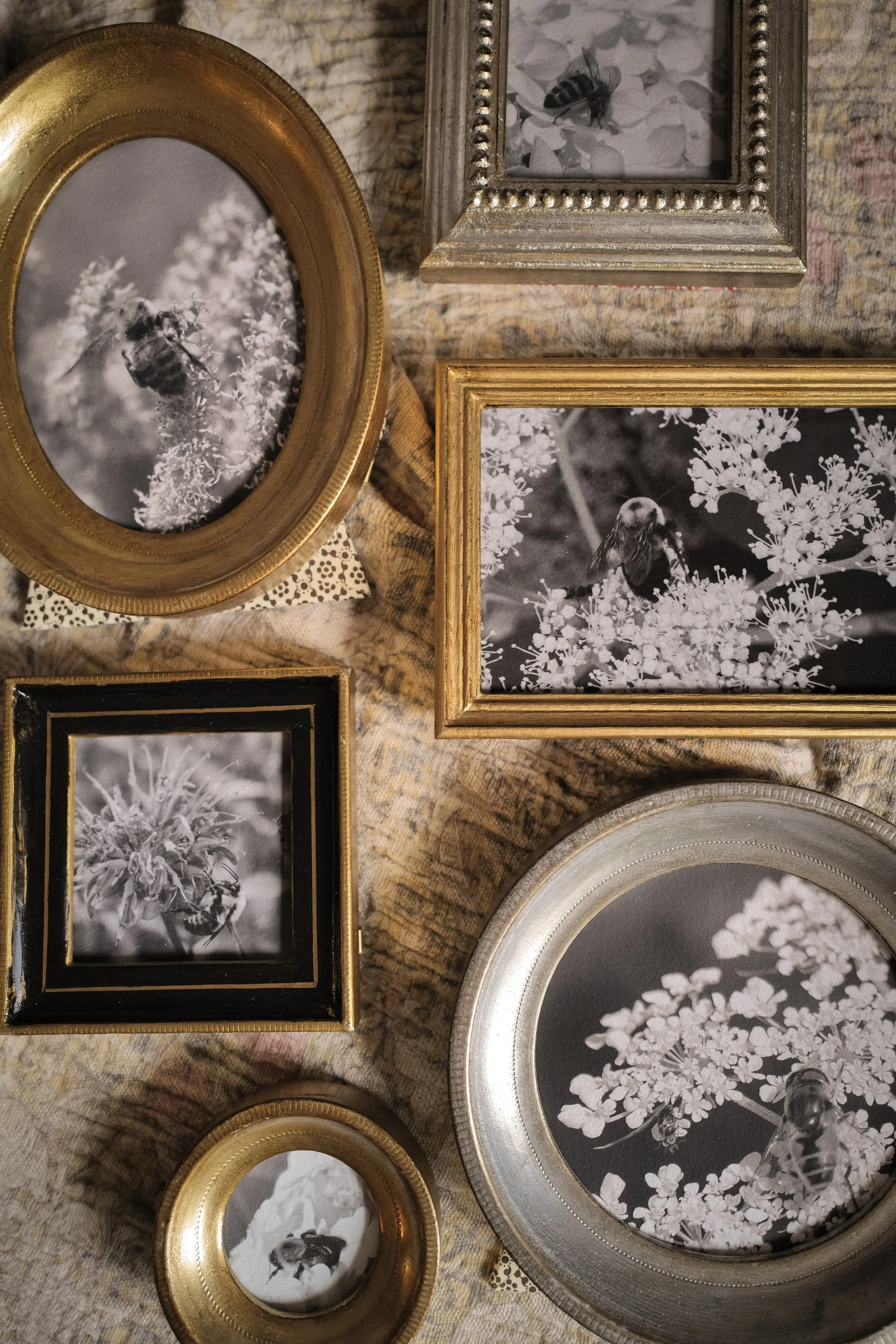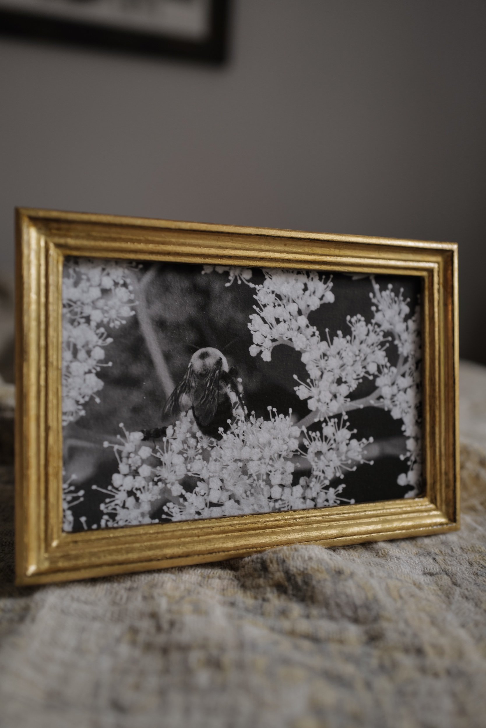 Since she first bought her camera, Kesia has taken thousands of photos of bees. They have brought joy digitally as she has shared them online, and now select pieces have been printed and framed to last a lifetime in your homes. Each photograph and frame are a totally unique, one-of-a-kind composition.